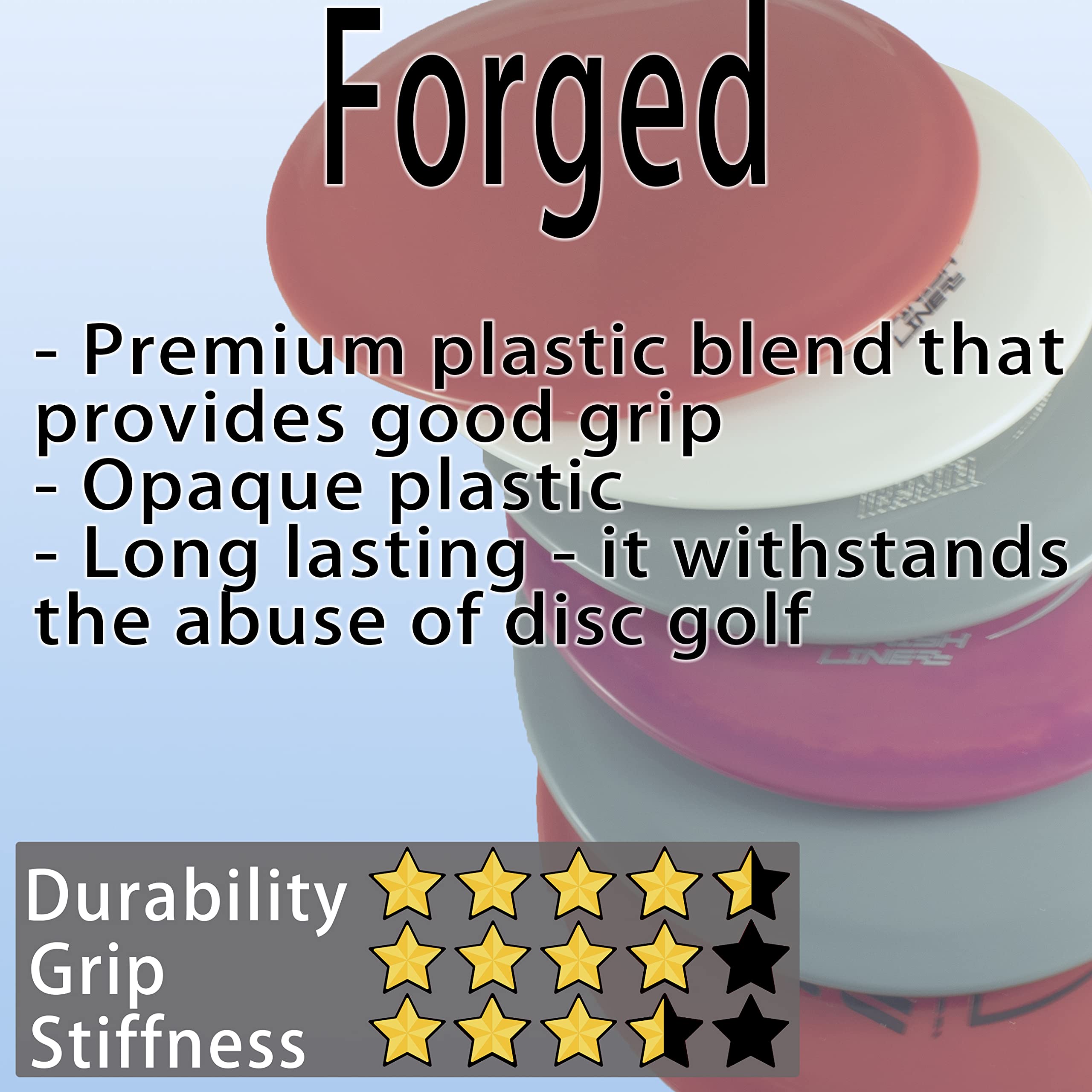 - The Forged plastic blend provides a grippy plastic that is durable and long lasting. It is an opaque plastic that will last and endure the abuses of the disc golf course.