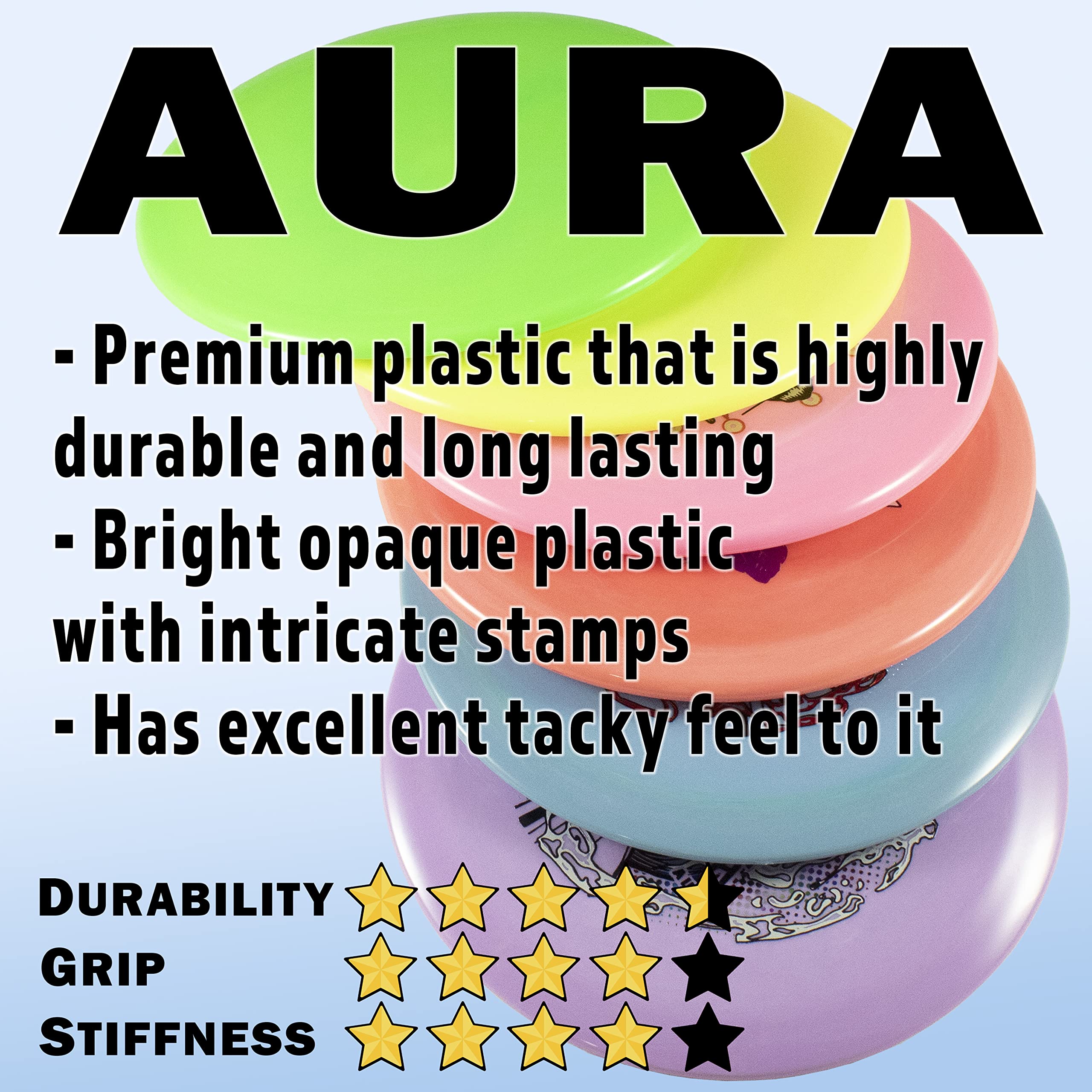 - PREMIUM DISC GOLF PLASTIC - Aura plastic is a high quality premium plastic blend. Designed to withstand the rigors of the disc golf course.